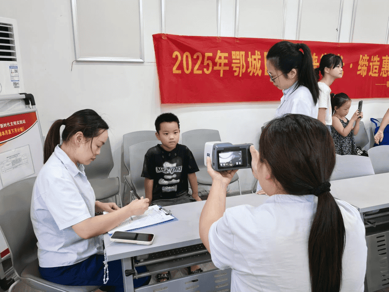 在義診環(huán)節(jié),醫(yī)護人員攜帶專業(yè)設備為每個孩子提供一對一眼部檢查。對于視力正常的孩子,給出日常護眼鞏固建議;對于有輕度近視傾向或視力異常的孩子,向家長詳細說明情況、分析原因,并提供個性化干預方案。孩子們在檢查中直觀感受眼部健康的重要性,家長也收獲了實用守護方法。