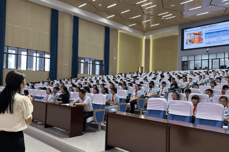 鄧教授以“什么是AI?——你好,智能新朋友”為切入點,用生動語言和貼合學生生活的實例,揭開人工智能神秘面紗,讓深奧概念更易理解。她從同學們常用的語音助手、智能推薦系統(tǒng)講起,結合互動問答,引導大家思考AI如何融入學習生活。接著,通過視頻演示AI在圖像識別、自動駕駛等領域的應用案例,深入解析技術原理,讓學生感受AI從概念到現(xiàn)實的跨越。講AI發(fā)展歷程時,她提及科學家攻堅克難的故事,鼓勵同學們保持好奇心、培養(yǎng)嚴謹思維,勇于提問和嘗試。講座中,同學們專注聆聽、踴躍提問,現(xiàn)場氣氛熱烈有序,科學種子在互動與思考中播撒。